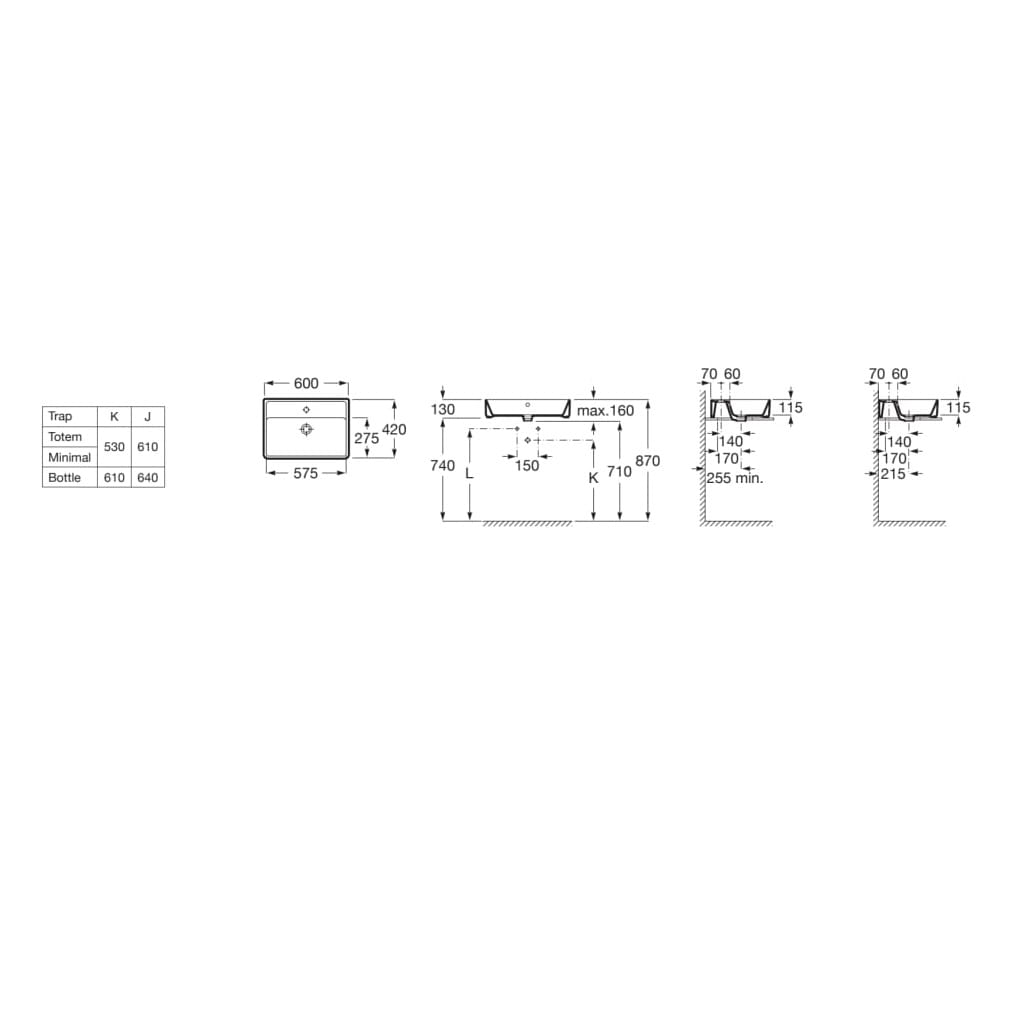 Dane techniczne: - szerokość: 600 mm - głębokość: 420 mm - wysokość: 130 mm