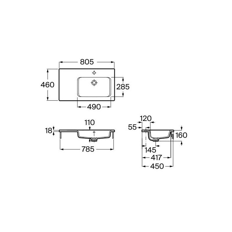 Główne cechy: - kolor: biały - materiał: ceramika - kształt: prostokątna - montaż: na meblu - brak zestawu montażowego