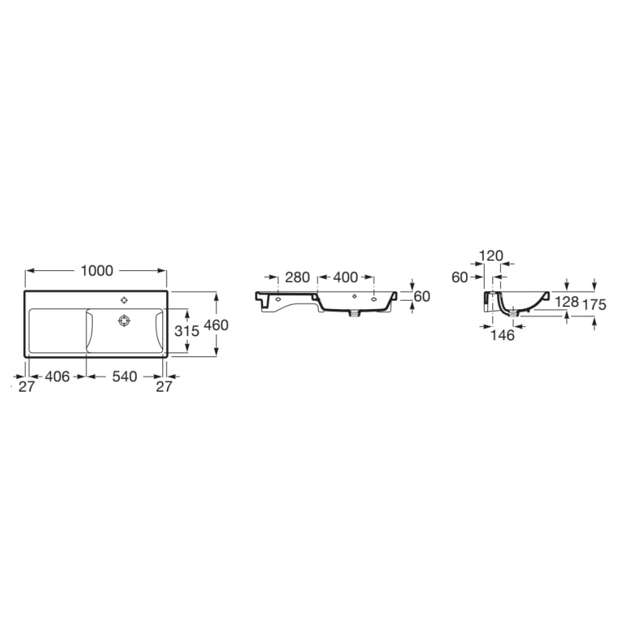 ROCA GAP umywalka meblowa prostokątna prawa 100x46 cm biały