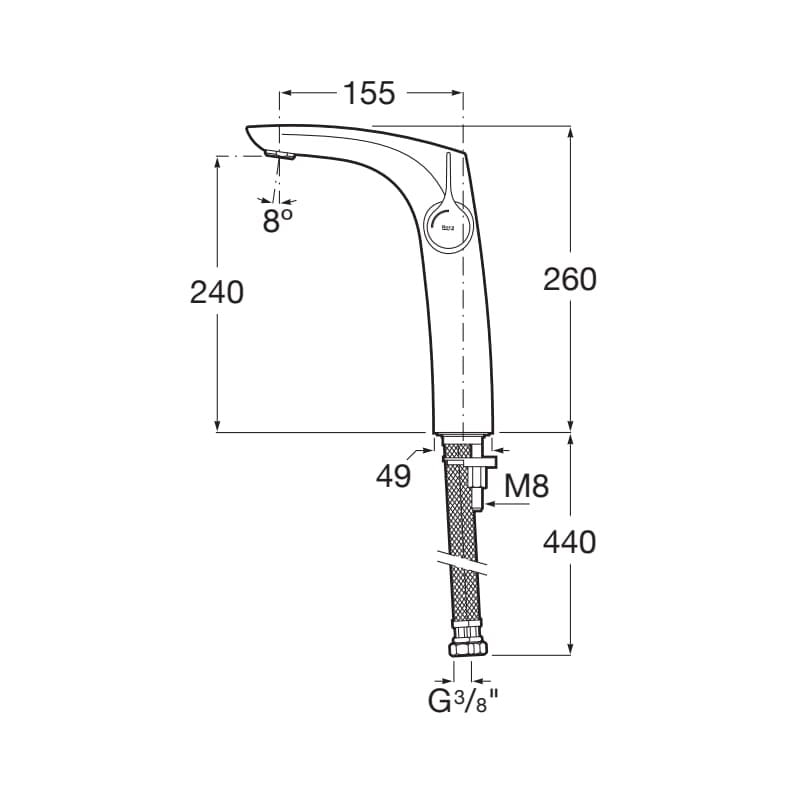 Dane techniczne: - wysokość: 260 mm - zasięg wylewki: 155 mm - przyłącze: G 3/8