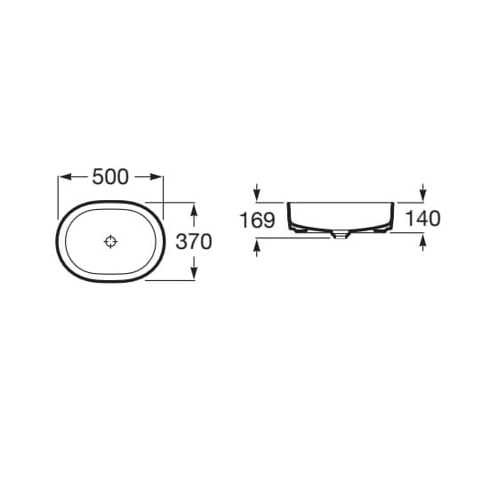 Dane techniczne: - szerokość: 500 mm - głębokość: 370 mm - wysokość: 140 mm - pojemność umywalki: 16,75 l