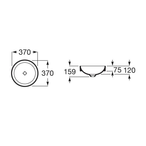 Dane techniczne: - średnica umywalki: 370 mm - wysokość: 159 mm