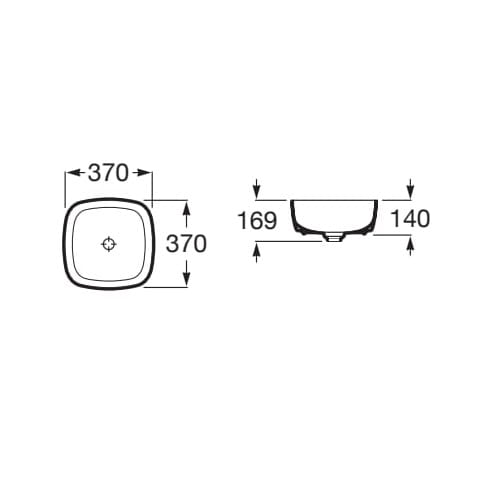 Dane techniczne: - szerokość: 370 mm - głębokość: 370 mm - wysokość: 140 mm - pojemność umywalki: 12,3 l
