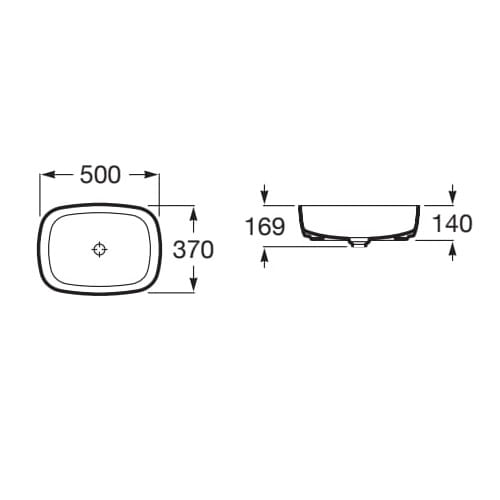 Główne cechy: - kolor: biały mat - materiał: FINECERAMIC ® - sposób montażu: na blacie - położenie niecki: na środku - położenie otworu na baterie: brak otworów - bez przelewu - pojemność umywalki: 17.75 l