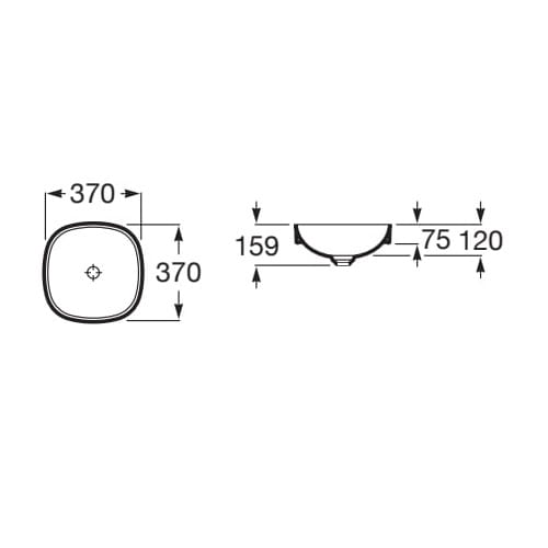 Główne cechy: - kolor: supraglaze - materiał: FINECERAMIC ® - sposób montażu: wpuszczana w blat - położenie niecki: na środku - położenie otworu na baterie: brak otworów - bez przelewu - pojemność umywalki: 9.25 l