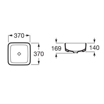 Dane techniczne: - szerokość: 370 mm - głębokość: 370 mm - wysokość: 140 mm - pojemność umywalki: 14,5 l