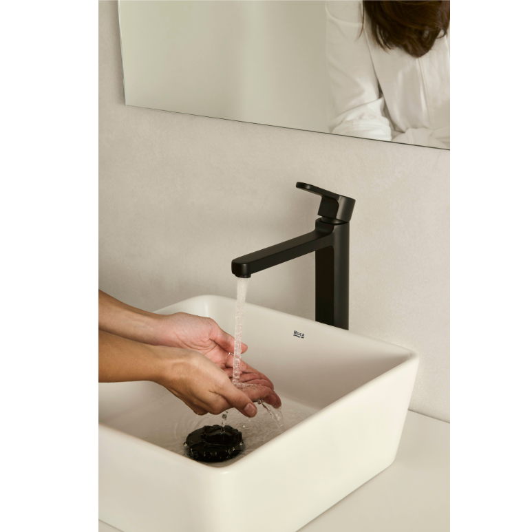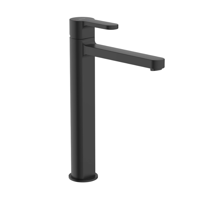 Główne cechy: - kolor: czarny mat - rodzaj: umywalkowa - typ: jednouchwytowa - montaż: stojąca - rodzaj wylewki: stała - elastyczne wężyki przyłączeniowe - oszczędność wody i energii - brak korka w zestawie - Wysoka wylewka