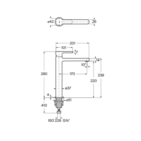 Dane techniczne: - przyłącze: G3/8 - zasięg wylewki: 170 mm - wysokość baterii: 280mm - przepływ przy 3 barach : 5l/min