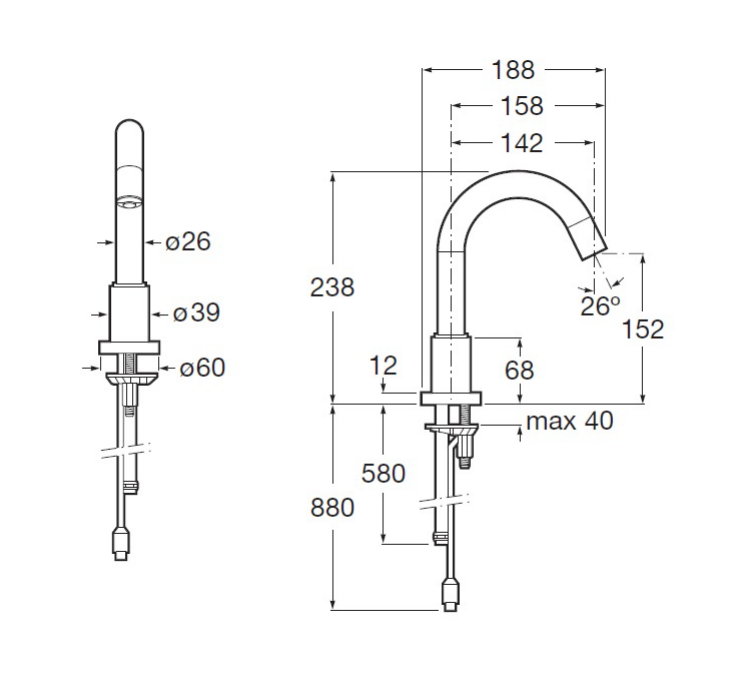 - zasięg wylewki: 142 mm