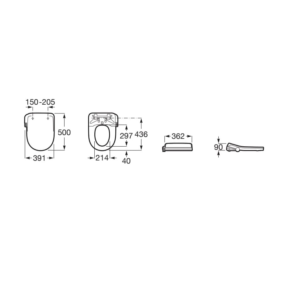 ROCA MULTICLEAN® M4 Round deska myjąca z funkcją bidetu, przyłącza boczne, biała