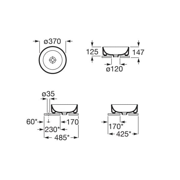 ROCA ONA ROUND umywalka nablatowa 37 cm, biała