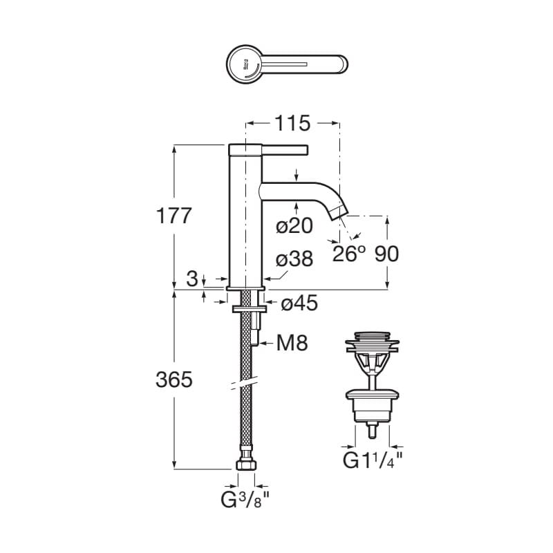 Dane techniczne: - wysokość: 177 mm - zasięg wylewki: 115 mm - przepływ (l/min - 3 bar): 5