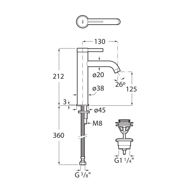 - zasięg wylewki: 130 mm