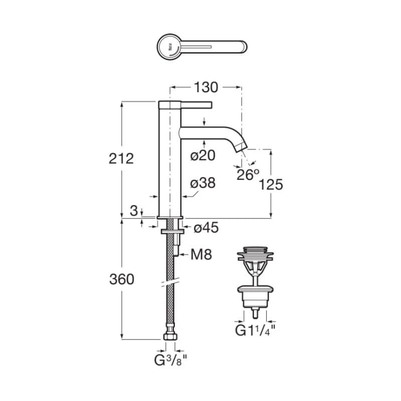 Dane techniczne: - wysokość: 212 mm - zasięg wylewki: 130 mm - przyłącze: G 3/8