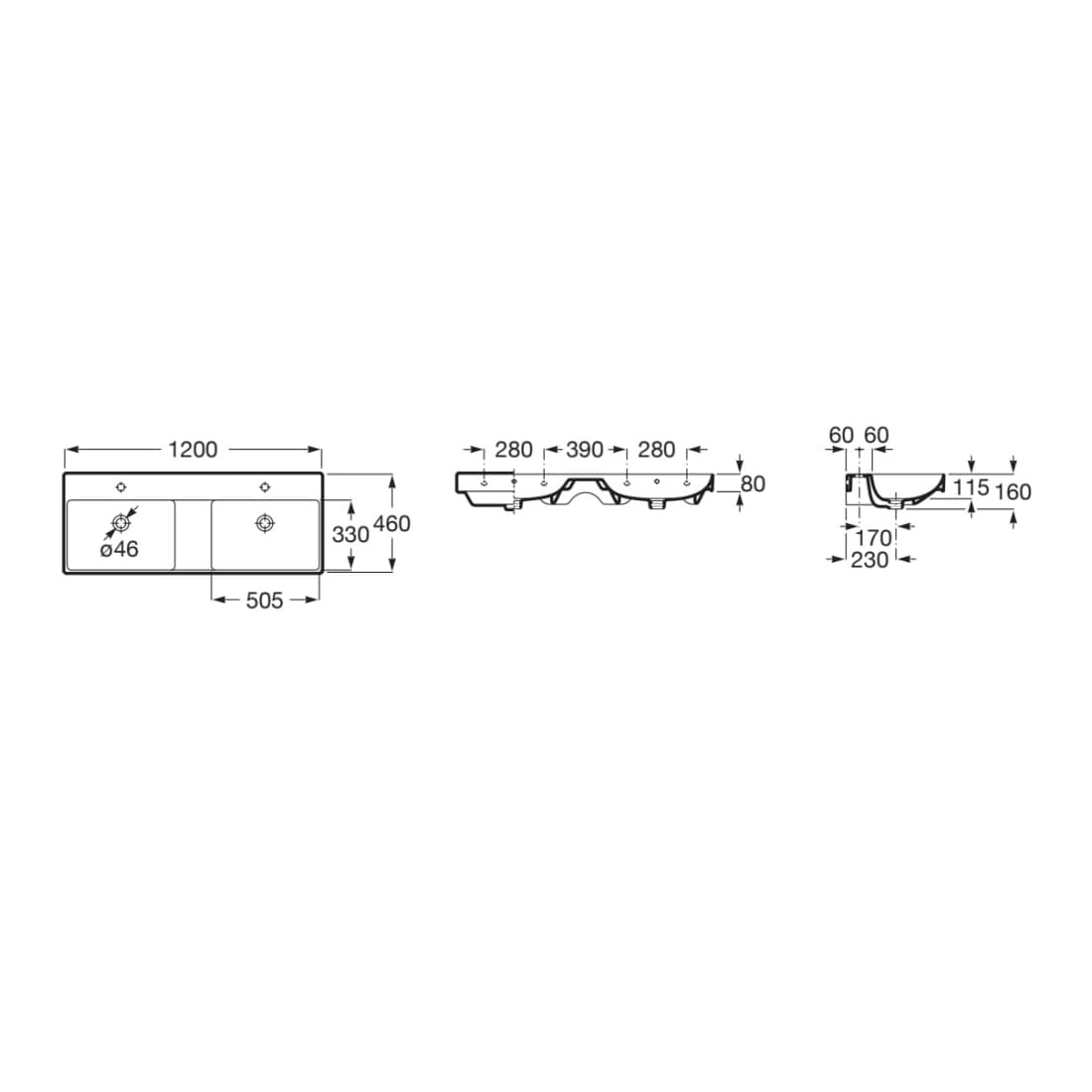 ROCA ONA umywalka ścienna podwójna 120 cm, biała
