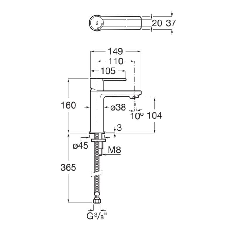 Dane techniczne: - wysokość: 160 mm - długość: 149 mm - zasięg wylewki: 110 mm - przyłacze: G 3/8