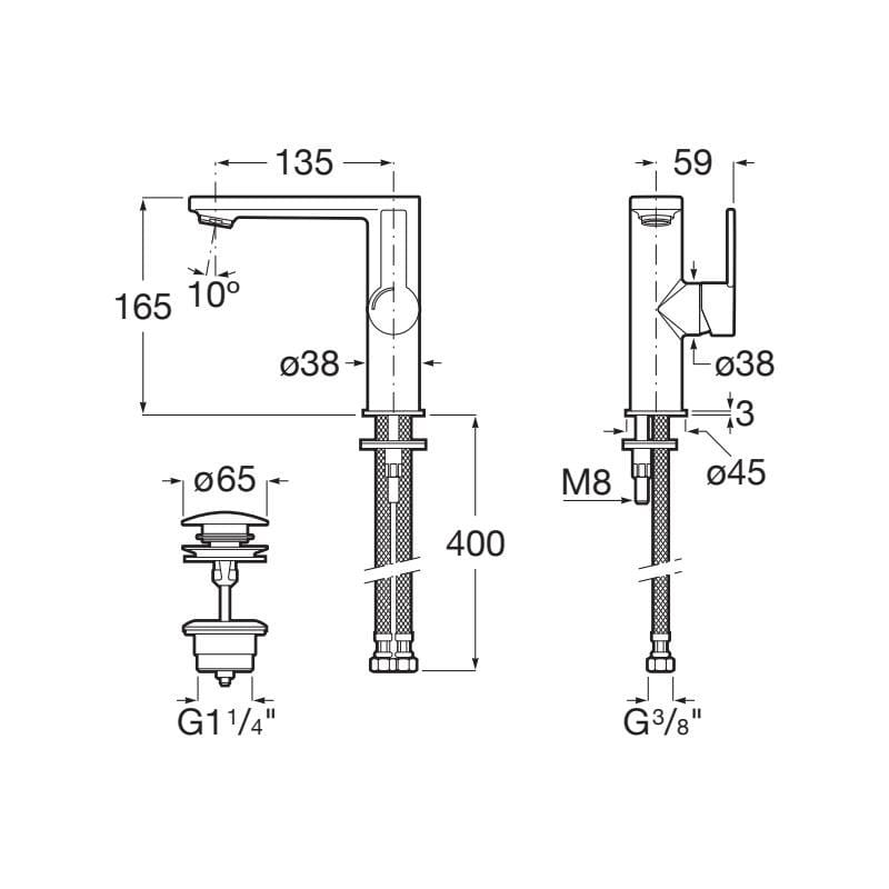 Dane techniczne: - wysokość: 165 mm - zasięg wylewki: 135 mm - przyłącze: G 3/8