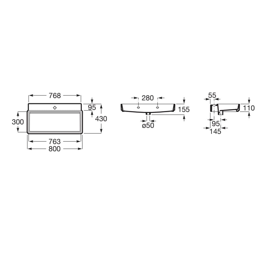 Dane techniczne: - szerokość: 800 mm - głębokość: 430 mm - wysokość: 155 mm