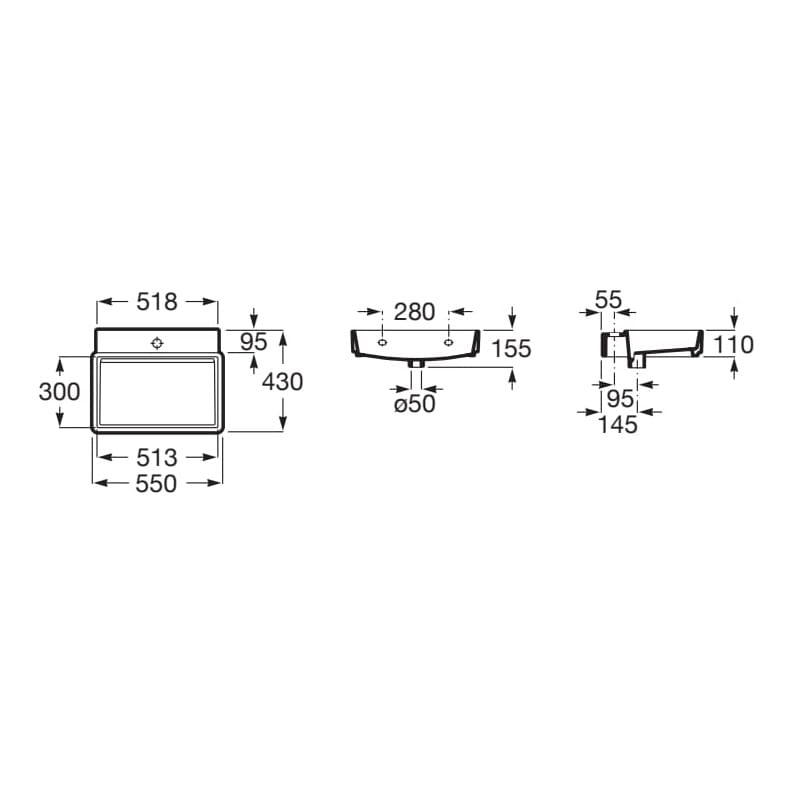 Dane techniczne: - szerokość: 550 mm - głębokość: 430 mm - wysokość: 155 mm