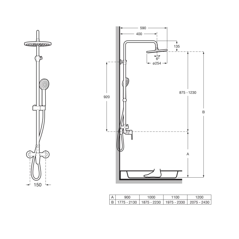 W zestawie: deszczownica, słuchawka prysznicowa, wąż prysznicowy 1,5m, drążek, bateria prysznicowa jednouchwytowa.