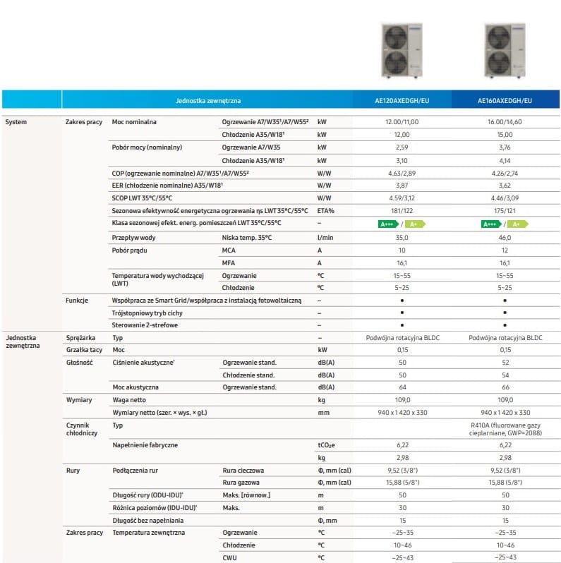 SAMSUNG Pompa ciepła split 12kW - 3-faz