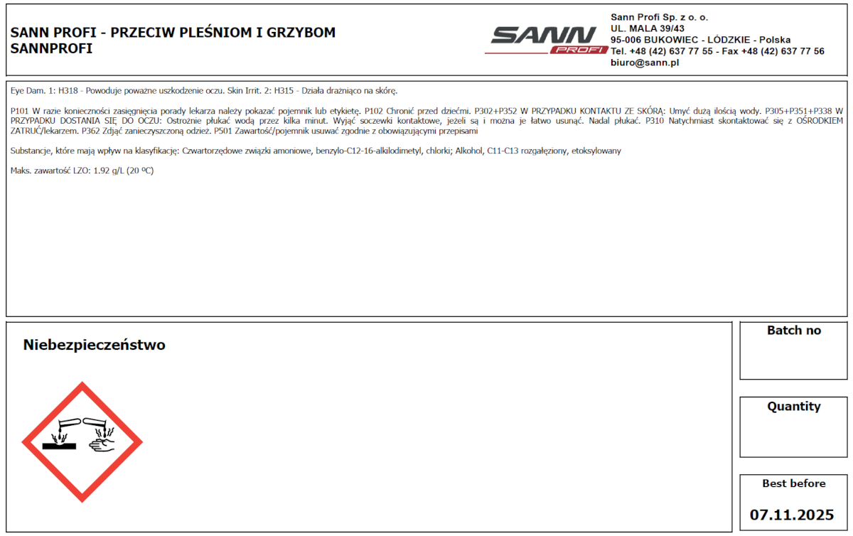 SANNPROFI preparat do usuwania grzybów i pleśni 500 ml