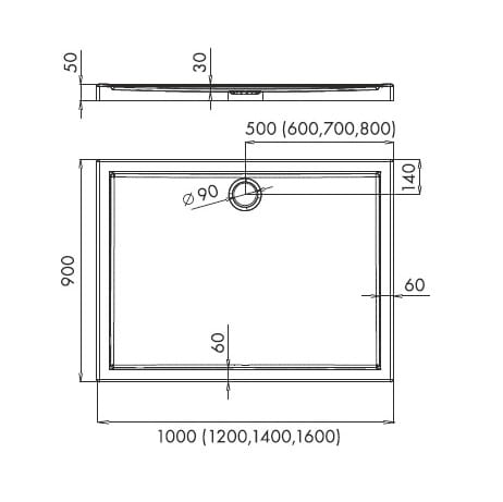 Dane techniczne: - wymiary: 80x120 cm - głębokość: 3 cm - odpływ fi 90 mm