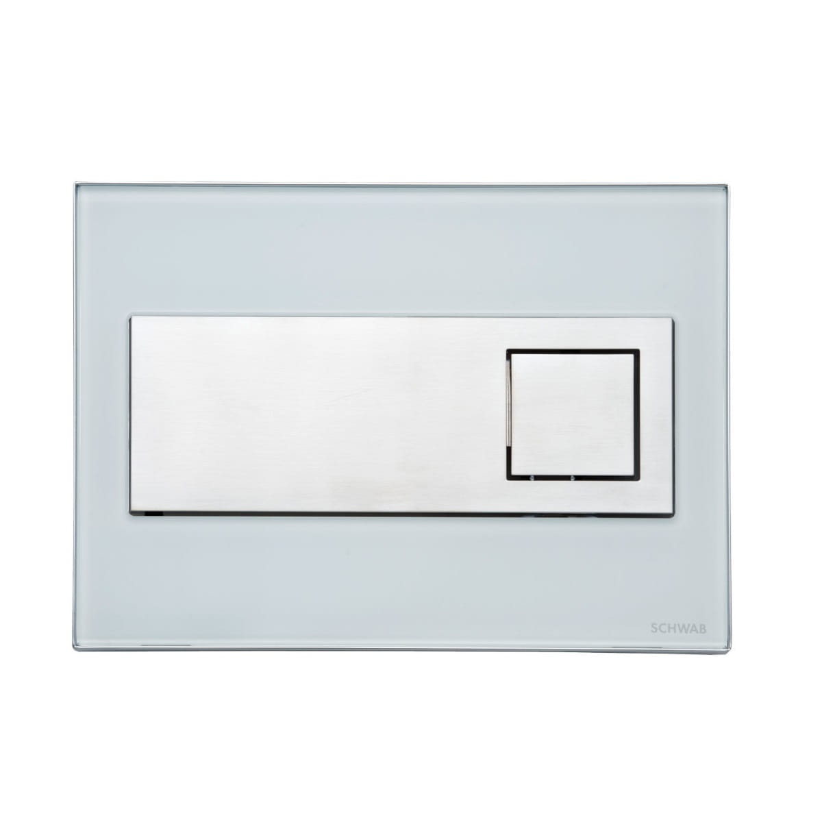 Główne cechy: - kolor: biały/ chrom - materiał: szkło - rodzaj uruchomienia: mechaniczny - przycisk do spłukiwania dwudzielnego - uruchamianie od przodu - do spłuczek podtynkowych SCHWAB 189 i 198