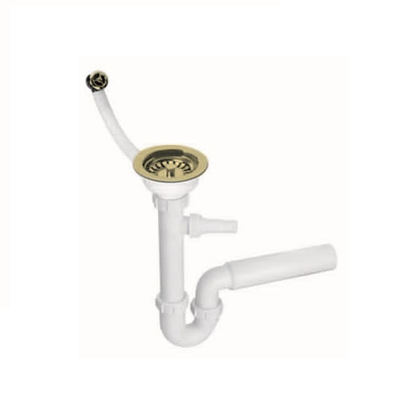 Syfon zlewozmywakowy jednokomorowy okrągły spust 3,5″ w kolorze złotym.