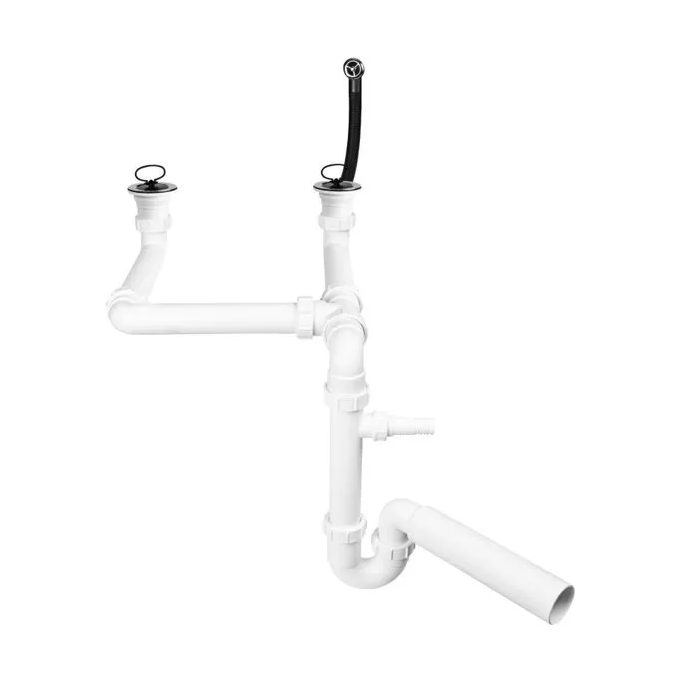 Syfon zlewozmywakowy podwójny rurowy 1.1/2x50mm ze spustami 1.1/2x70mm