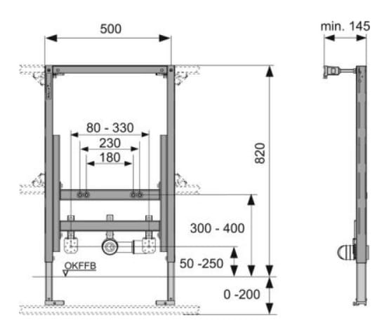 Dane techniczne: - głębokość zabudowy: 145 - 200 mm - wymiary stelaża: 820x500x145 mm