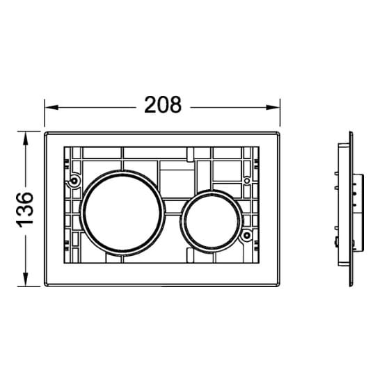 Element uruchamiający z przyciskami spłukującymi TECEloop, przeznaczony do spłuczek TECE uruchamianych z przodu lub od góry, do łączenia z osłoną systemu modułowego TECEloop.