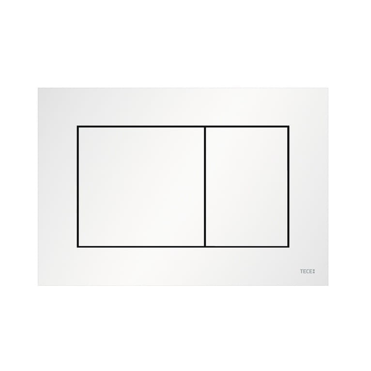 Główne cechy: - kolor: biały mat - materiał: tworzywo - spłukiwanie dwoma ilościami wody - uruchamiany z przodu lub od góry - bardzo płaski przycisk - wyposażony w gumowe odboje z obu stron - odpowiedni do montażu zlicowanego w połączeniu z ramką montażową do WC i ramką dystansową TECE - kompatybilny z płytką maskującą z koszem na kostki czyszczące