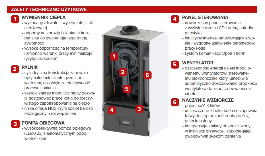 - system komunikacji OPEN-THERM - zdalne sterowanie parametrami kotła z pozycji regulatora pokojowego