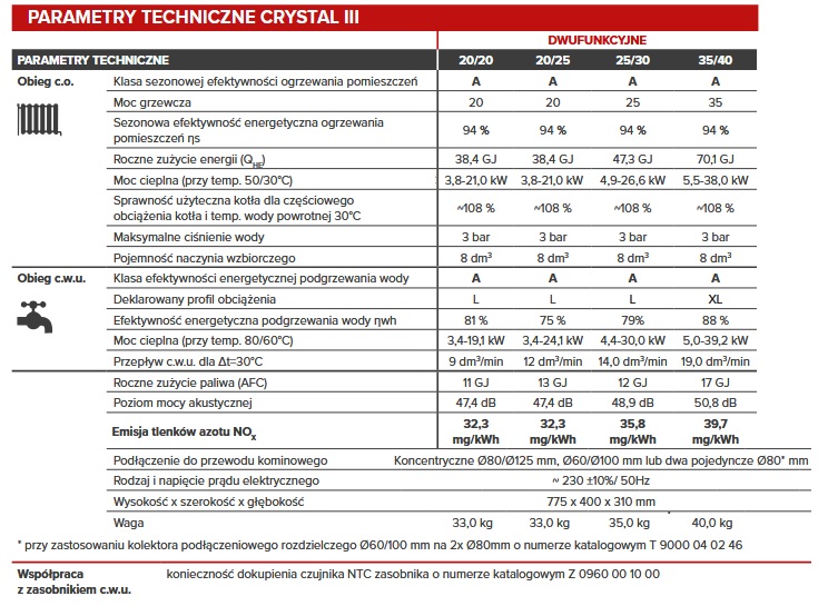 - Sezonowa efektywność energetyczna ogrzewania pomieszczeń ηs 94,0 %