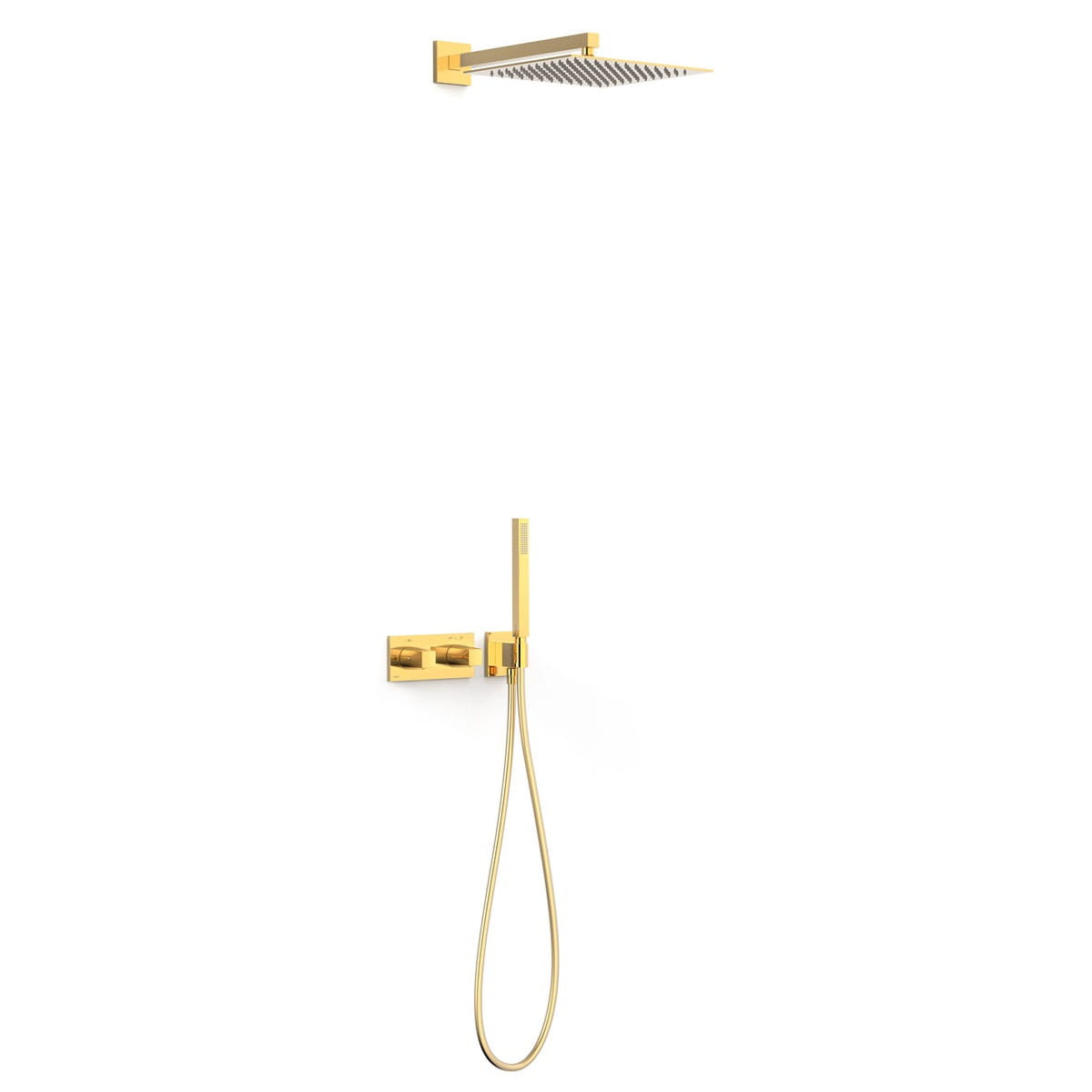 Główne cechy: - kolor: 24-k złoto - rodzaj: zestaw natryskowy - typ: dwuuchwytowa/ termostatyczna - montaż: podtynkowa - w zestawie korpus podtynkowy termostatyczny o instalacji poziomej - regulator natężenia przepływu i rozgałęźnik 2-drożny - pokrętło kwadratowo-okrągłe - ramię naścienne z obrotową deszczownicą ze stali nierdzewnej - uchwyt do słuchawki prysznicowej z przyłączem w ścianie - słuchawka prysznicowa z mosiądzu z systemem zapobiegającym osadzaniu się kamienia - satynowy wąż