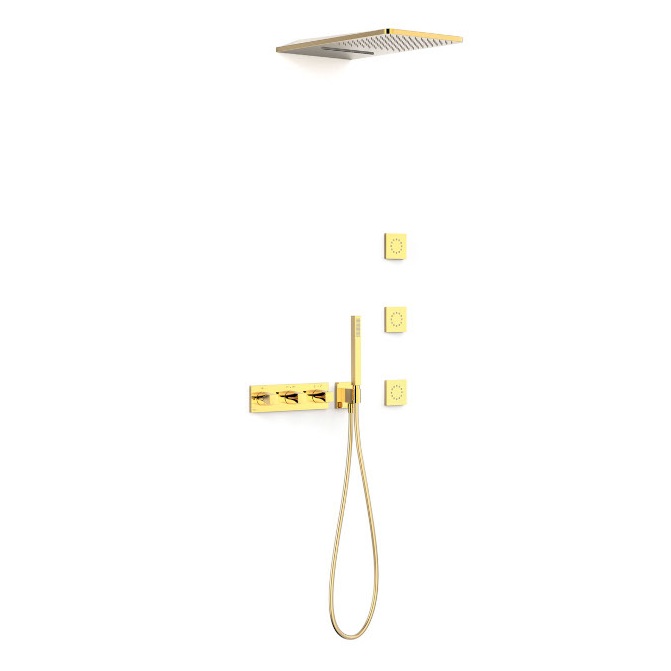 TRES B-SYSTEM zestaw natryskowy termostatyczny z baterią i deszczownicą złoto 24k
