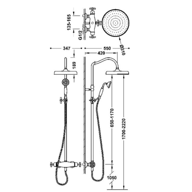 TRES CLASIC EXCLUSIVE zestaw natryskowy termostatyczny z baterią i deszczownicą, mosiądz antyczny