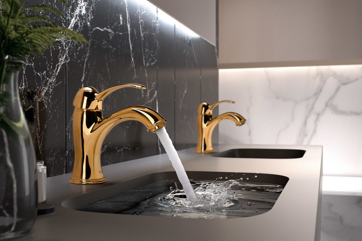 TRES CLASIC EXCLUSIVE bateria umywalkowa stojąca, 24-k złoto