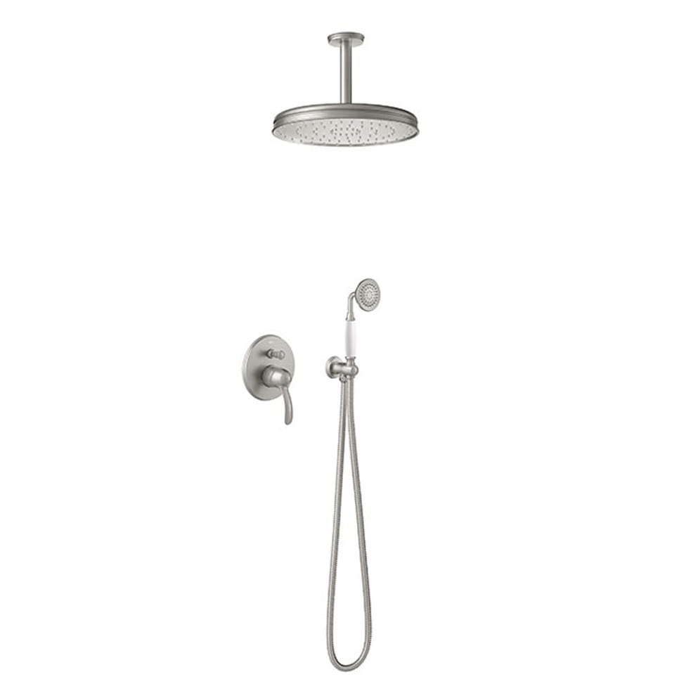 Główne cechy: - kolor: stal - rodzaj: zestaw natryskowy - typ: jednouchwytowa - montaż: podtynkowa - ramię sufitowe z obrotową deszczownicą - uchwyt do słuchawki prysznicowej z przyłączem w ścianie - inwersor 2-drożny