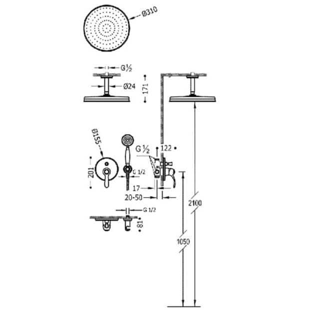 Dane techniczne: - średnica deszczownicy: 300 mm - ramię natrysku: 171 mm - średnica rozety: 155 mm