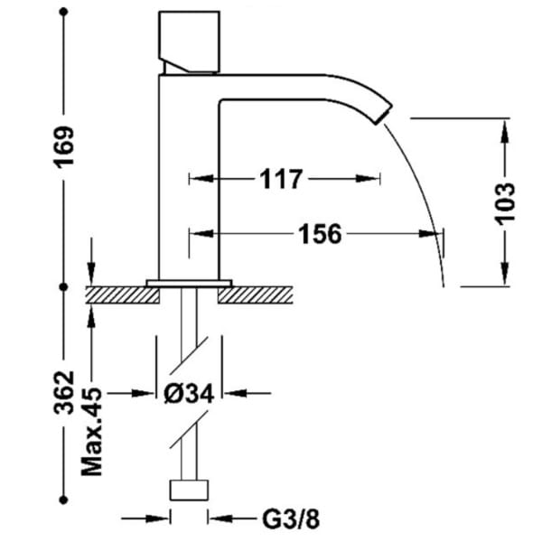 Dane techniczne: - wysokość baterii: 169 mm - długość baterii: 143 cm - zasięg wylewki: 117 cm - przyłącza: G 3/8 - strumień ograniczony do 5 l/min