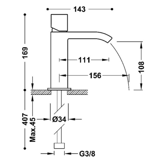 Dane techniczne: - wysokość baterii: 169 mm - długość baterii: 143 mm - przyłącza: G 3/8