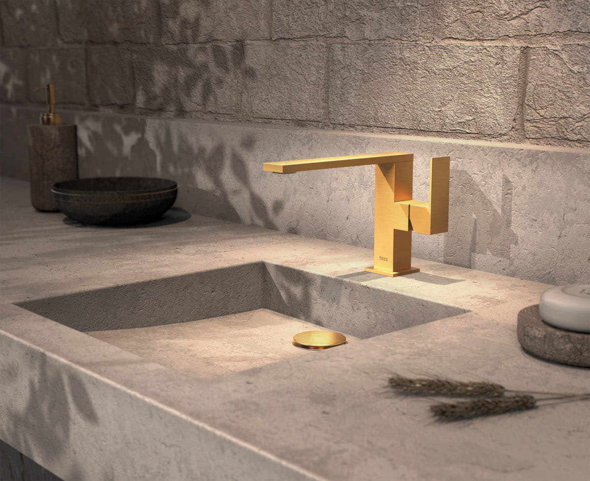 TRES CUADRO EXCLUSIVE bateria umywalkowa stojąca, 24-k złoto matowe