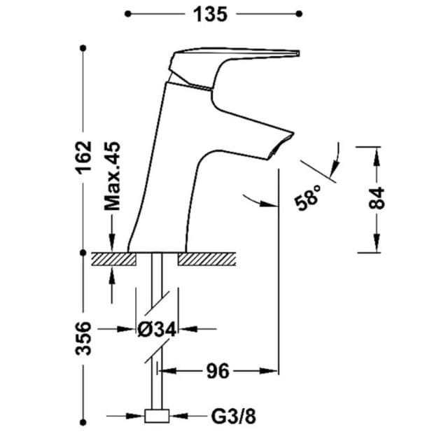 Dane techniczne: - wysokość baterii: 162 mm - długość baterii: 135 mm - zasięg wylewki: 196 mm - przyłącze G3/8"