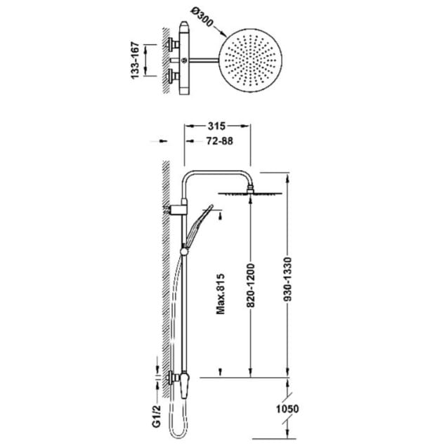 Dane techniczne: - średnica deszczownicy: 300 mm - średnica przyłącza: 1/2"