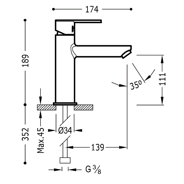 Dane techniczne: - zasięg wylewki: 139 mm - wysokość baterii: 189 mm - wysokość baterii do perlatora: 111 - długość baterii: 174 mm