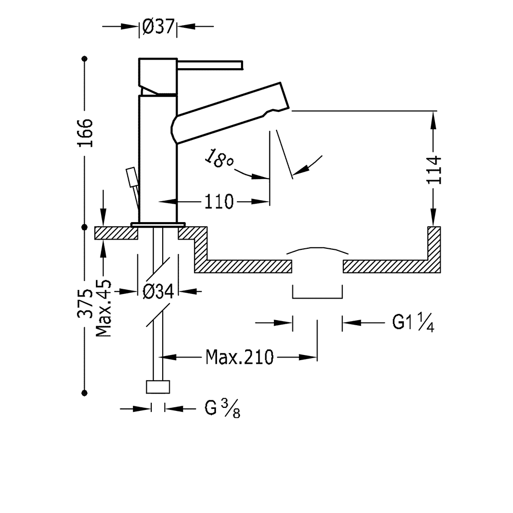 Dane techniczne: - wysokość baterii: 16,6 cm - przyłącza: G 3/8