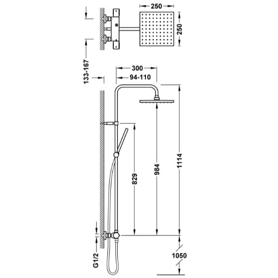 Dane techniczne: - wymairy deszczownicy: 250x250 mm - przyłącza: G1/2