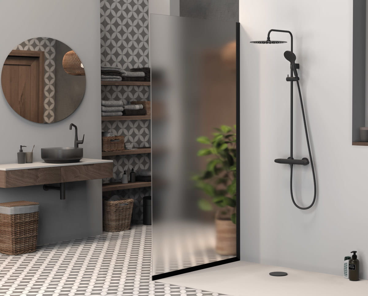 Główne cechy: - kolor: czarny mat - rodzaj: zestaw natryskowy - typ: dwuuchwytowa/termostatyczna - montaż: naścienny - inwersor wbudowany w regulatorze przepływu - pokrętło owalne - teleskopowy drążek prysznicowy - deszczownica obrotowa ze stali nierdzewnej - obrotowy i przesuwny uchwyt do słuchawki prysznicowej - satynowy wąż - bateria 2-drożna